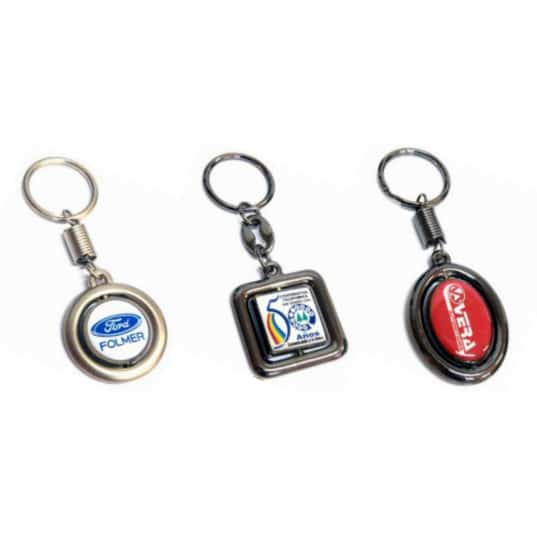 llaveros de metal giratorios resinados en ambas caras